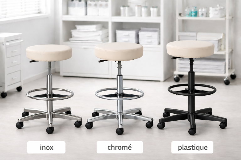 Le produit peut être proposé avec plusieurs configurations fonctionnelles, options de réglage, systèmes mécaniques ou accessoires complémentaires, tout en conservant une base standardisée. La sellerie, lorsqu’elle est présente, est réalisée en revêtement médical facile à nettoyer.